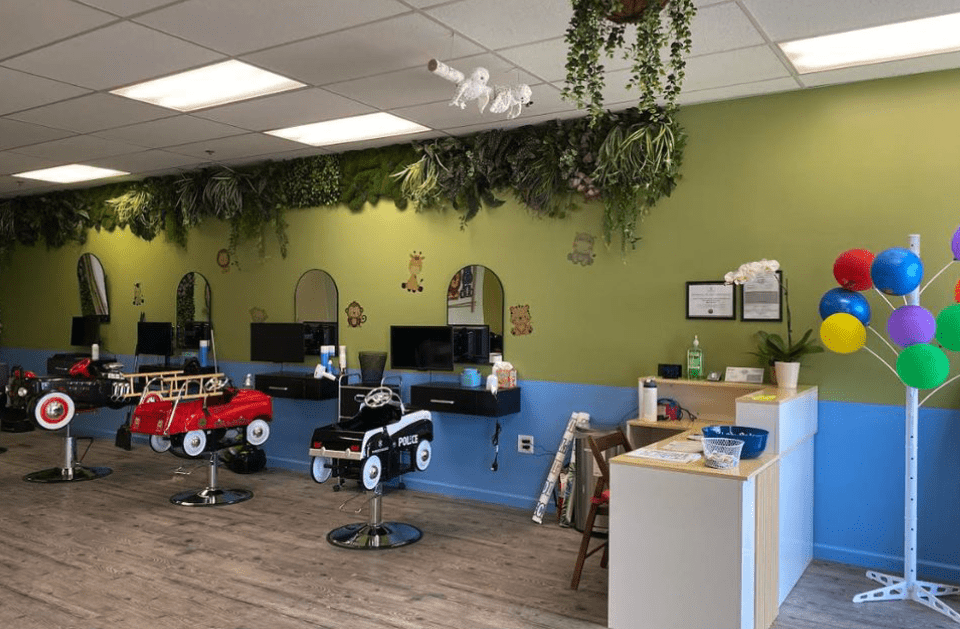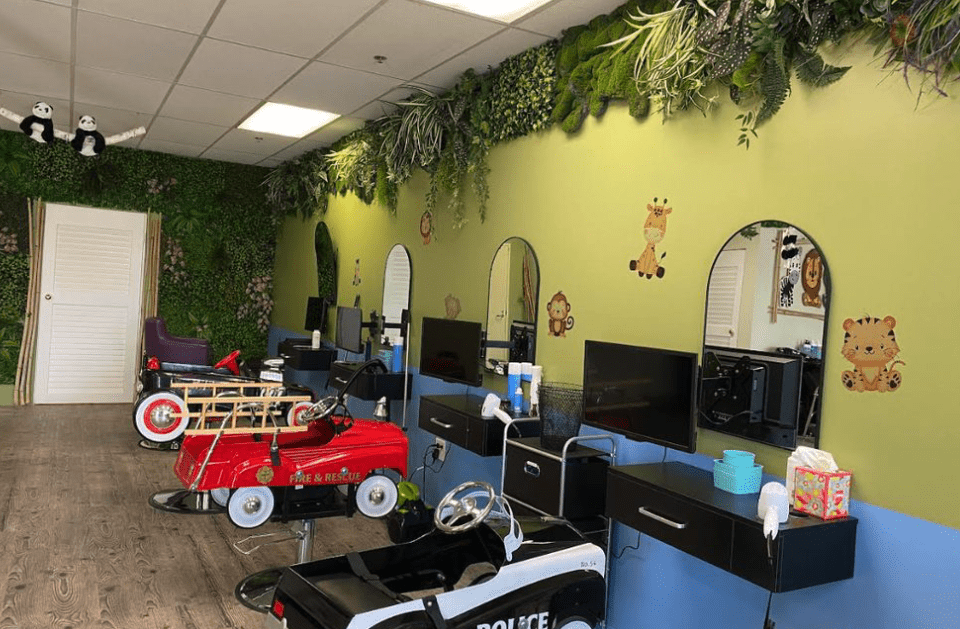 Little ones love themed chairs, TVs, and game stations that transform every haircut into a fun experience.